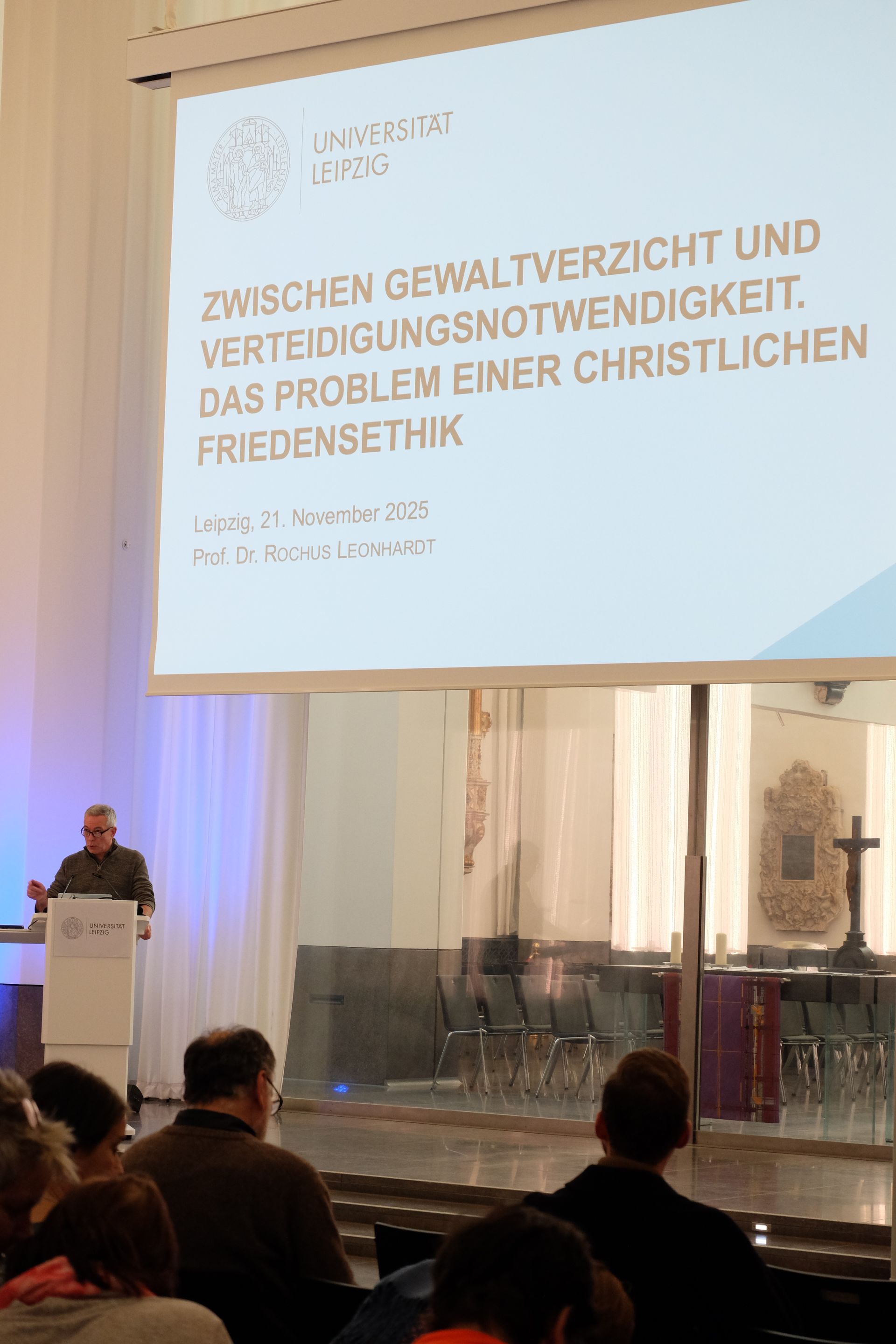Der Religionslehretag beginnt nach der Andacht mit einem Plenarvortrag von Prof. Dr. Rochus Leonhardt mit dem Titel "Zwischen Gewaltverzicht und Verteidigungsnotwendigkeit. Das Problem einer christlichen Friedensethik." Anschließend folgt eine offene Plenumsdiskussion. Am Nachmittag werden zahlreiche Workshops danach fragen, wie der Religionsunterricht in den verschiedenen Schulstufen altersgerecht „Krieg und Frieden“ thematisieren kann.