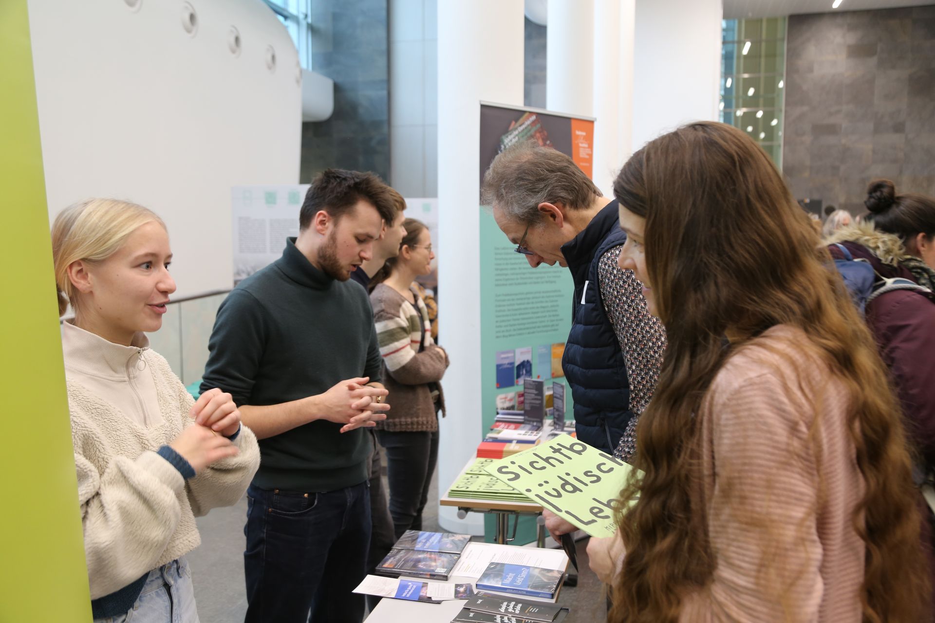 Bei einem kleinen Imbiss und einem Getränk gibt es die Chance zu Austausch, Vernetzung & weiterer Diskussion. Auch Informations- und Bücherstände laden zum Verweilen ein.